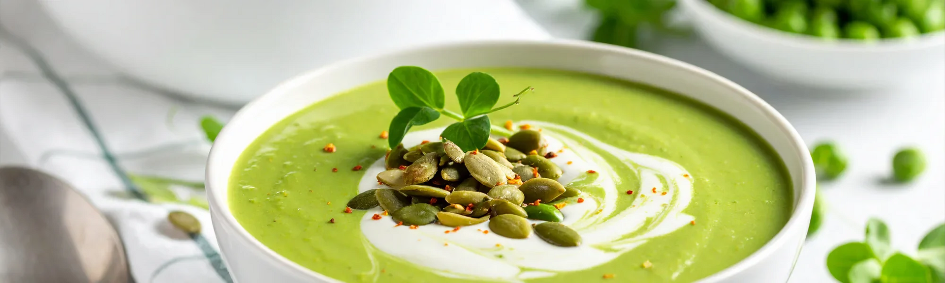 Ricetta della Vellutata fredda ai piselli e Semi di Zucca Bio